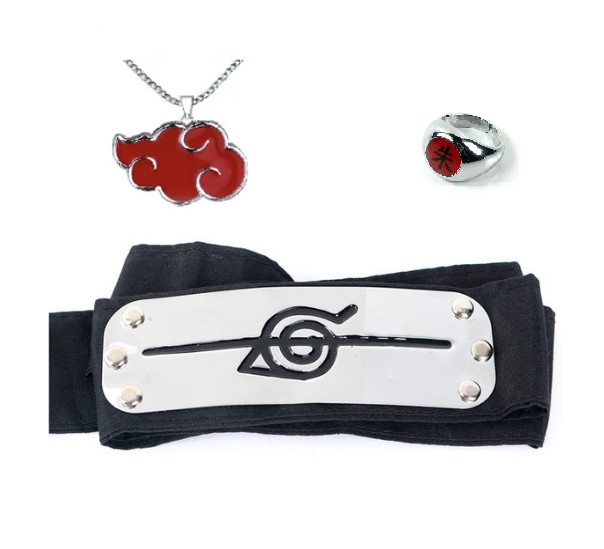 Набір аксесуарів Наруто: Пов'язка "Перекреслений Прихований Лист", кільце Шарінган, ланцюжок Акацукі